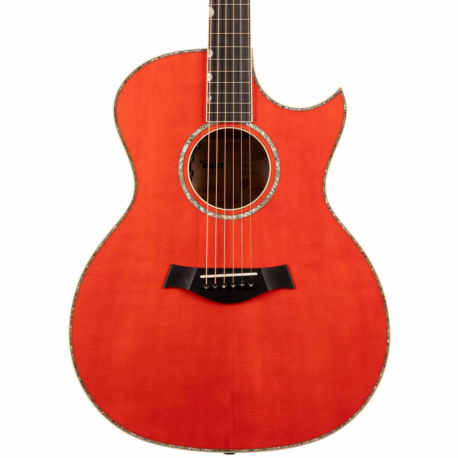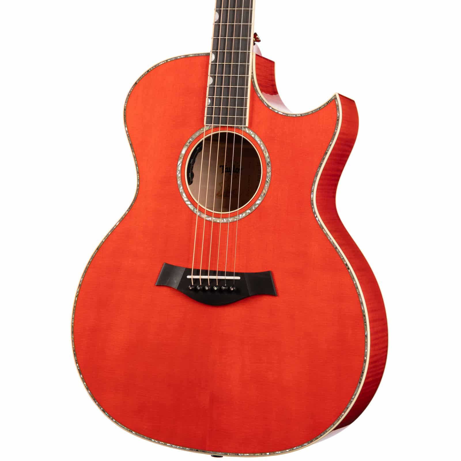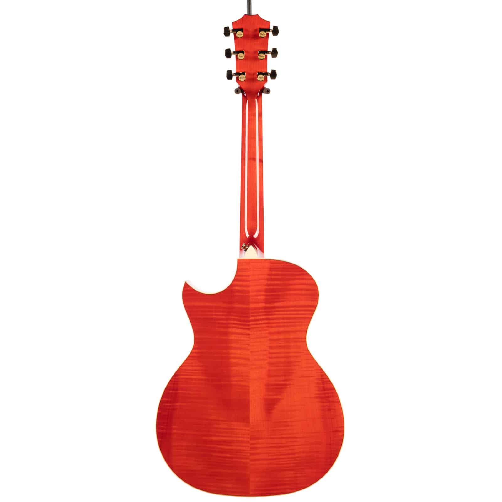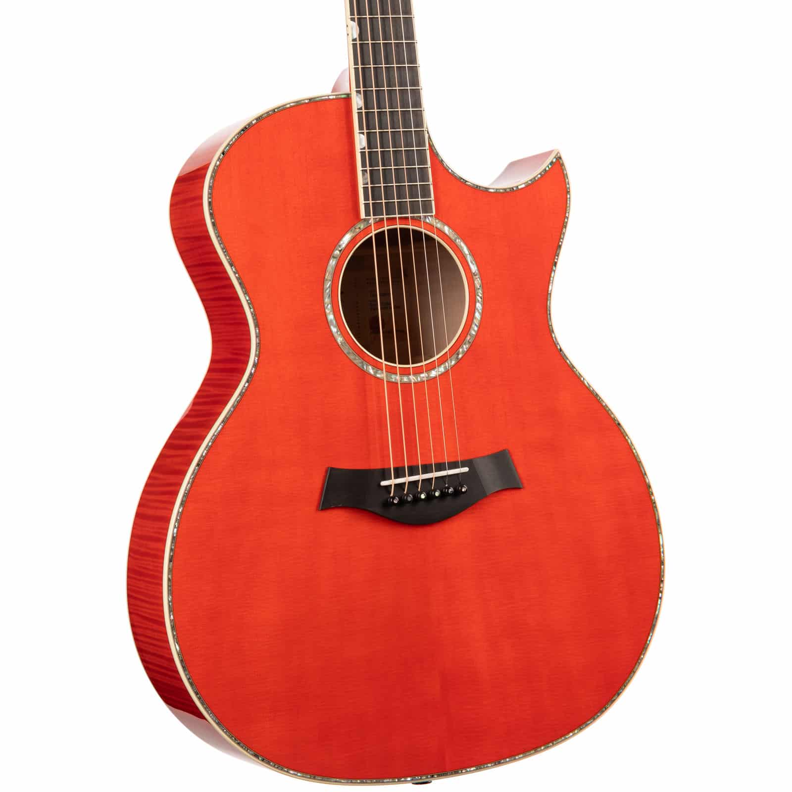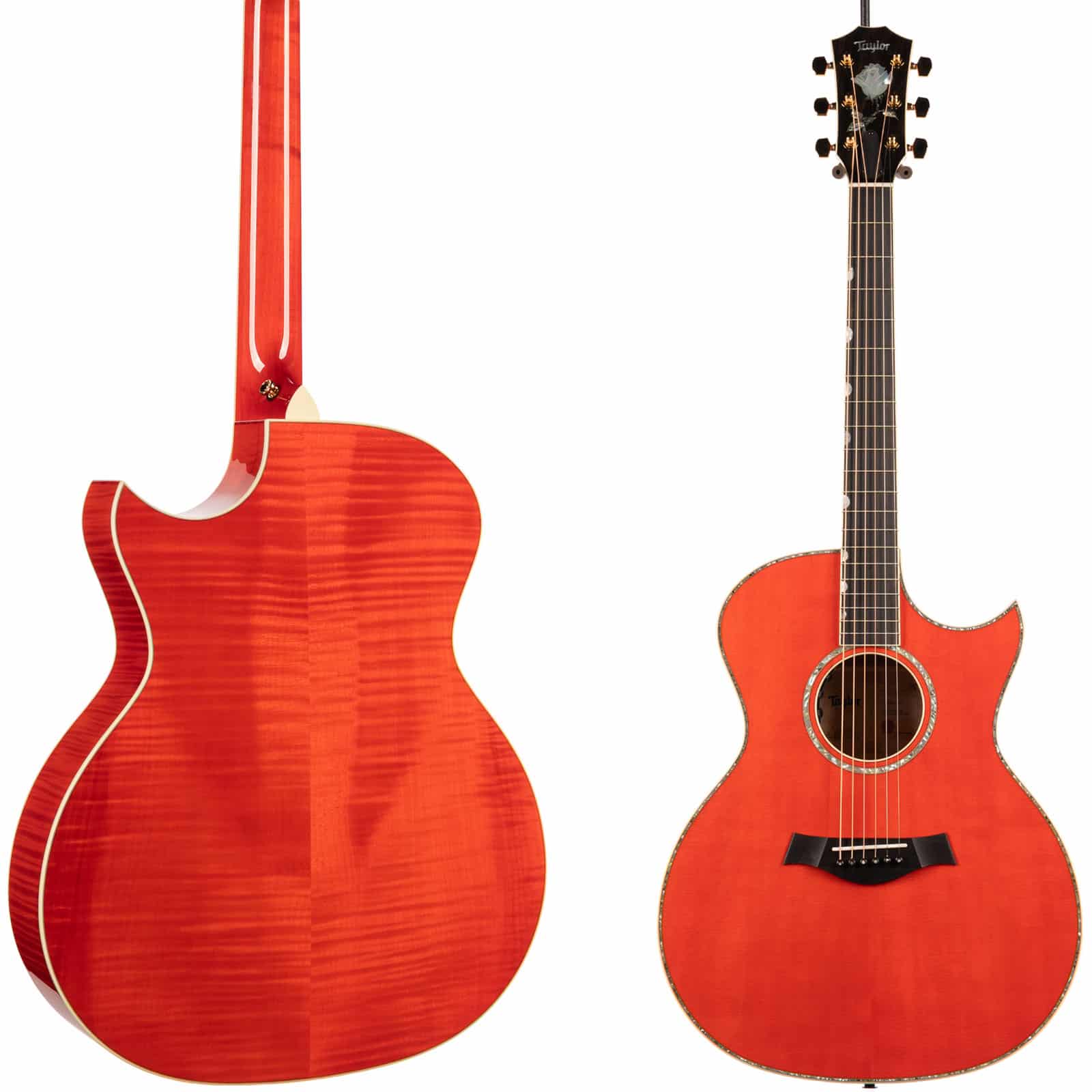 Plug it in, and the Claria Acoustic Pickup System flawlessly translates the guitar’s natural acoustic voice to any amp or PA. With simple controls for Volume, Mid-Contour, and Tone, dialing in your live sound is a breeze. And let’s talk about that finish—the Translucent Orange is a showstopper, letting the beautiful figuring of the maple shine through. From the sharp Florentine cutaway to the intricate Mother-of-Pearl and Green Abalone rose inlay on the headstock, every detail is a nod to the artistry of its namesake.