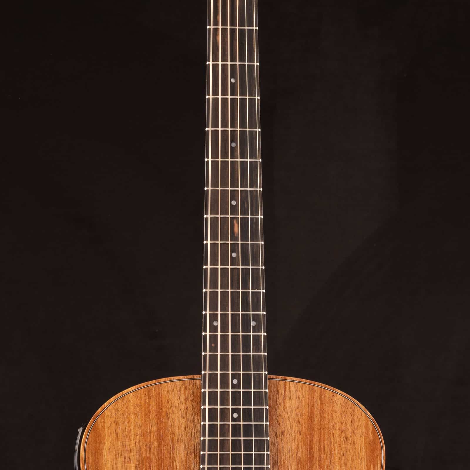 The magic starts with that solid Hawaiian koa top. It gives you a bold, focused voice with clear highs, warm mids, and a tight low end that never gets woofy. As you play it in, koa sweetens up and starts to bloom, so this is a guitar that gets better the more you bond with it.