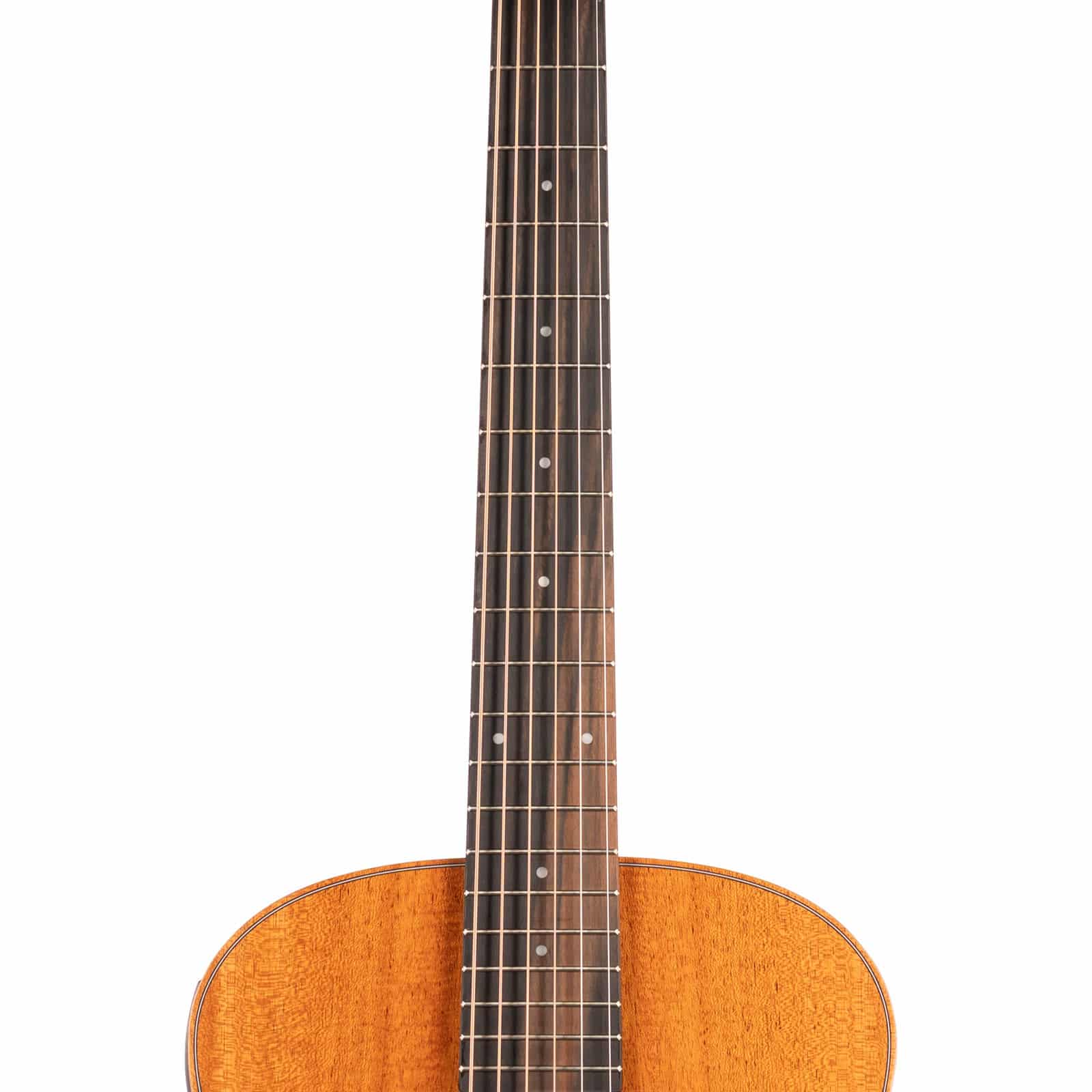 The magic starts with the tonewoods. A solid Neo-Tropical Mahogany top provides that sought-after punch and clarity, responding to a light touch with surprising nuance and digging in with a satisfying growl when you strum hard. Paired with layered sapele back and sides, the body is both durable and resonant, perfect for the road or the couch. The scaled-down Grand Symphony body shape is incredibly comfortable to hold, yet it projects with an authority that will surprise you—and everyone else in the room.