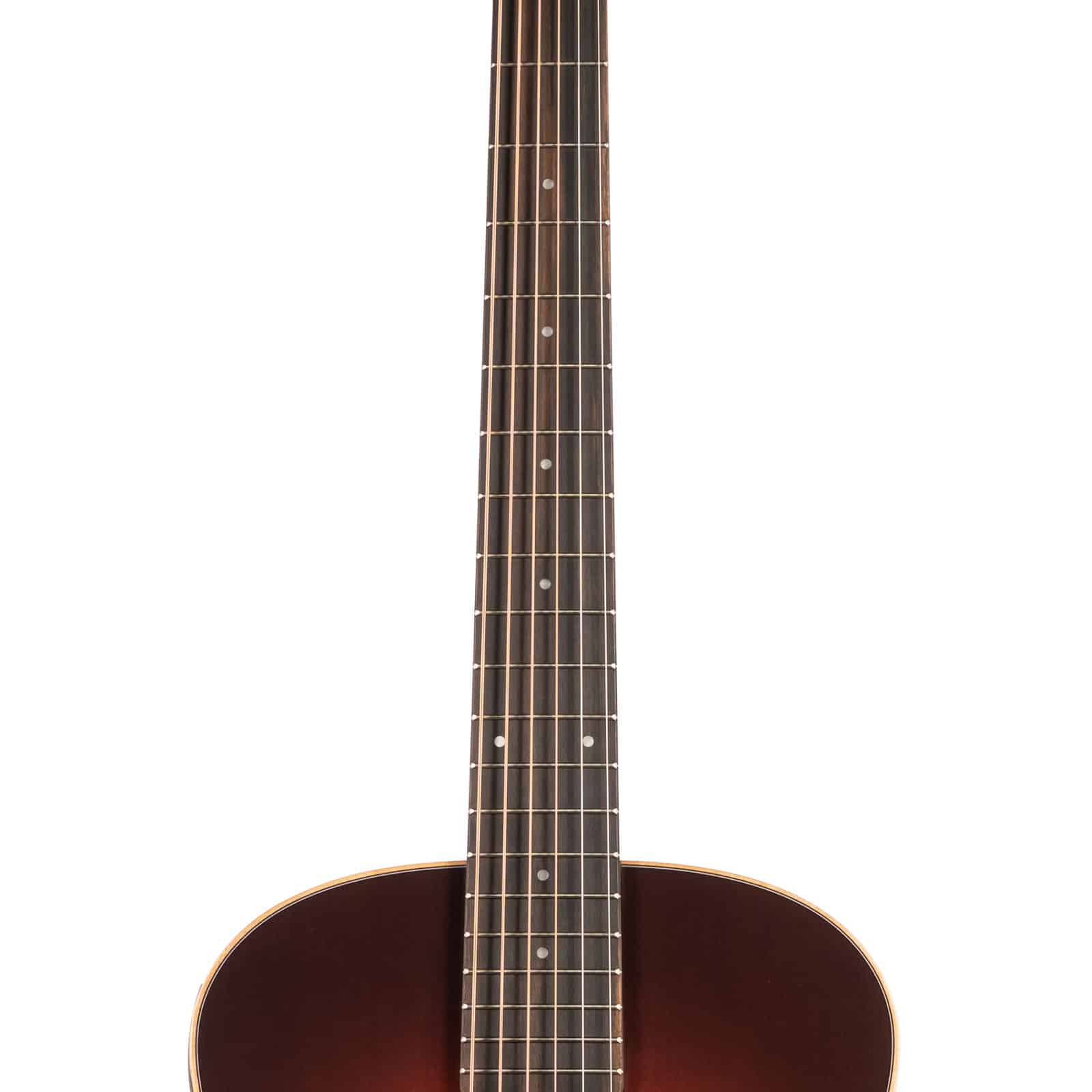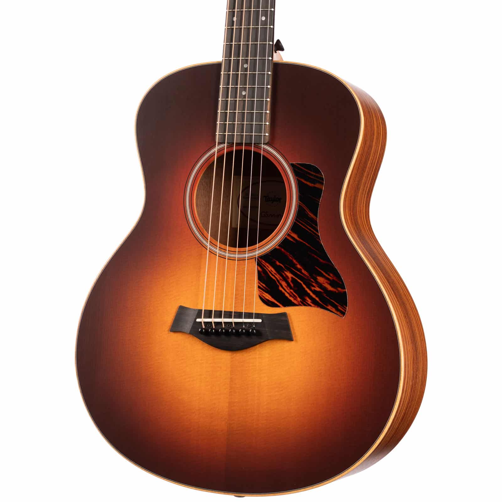 The magic starts with a solid, torrefied Sitka spruce top—the gold standard for acoustic clarity and dynamic range. Taylor’s torrefaction process ages the wood for a warm, played-in sound right out of the box. Paired with layered Indian rosewood for the back and sides, you get a beautiful bloom in the low end and sparkling highs. The sunburst matte finish gives it a killer vintage vibe that feels smooth and broken-in from day one.