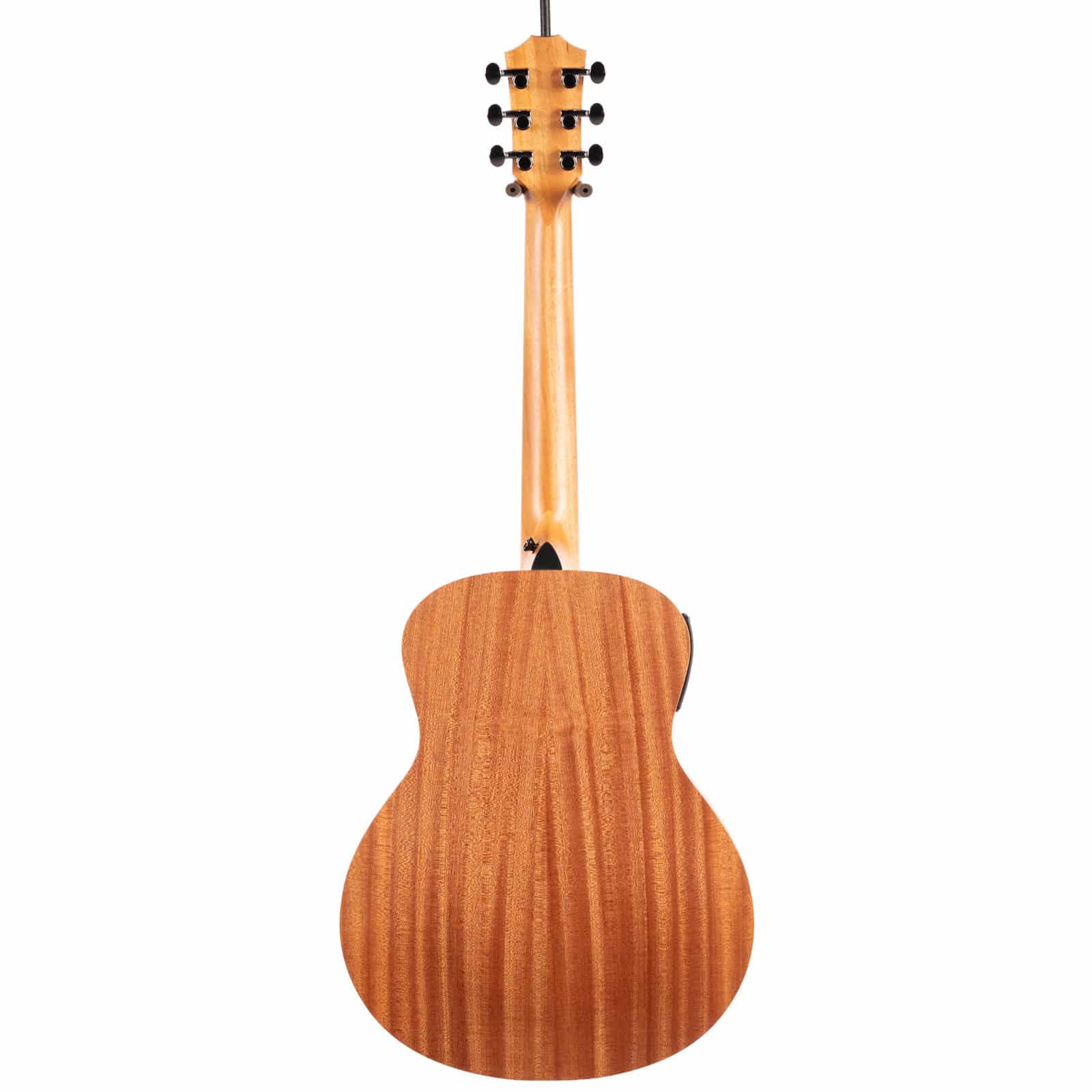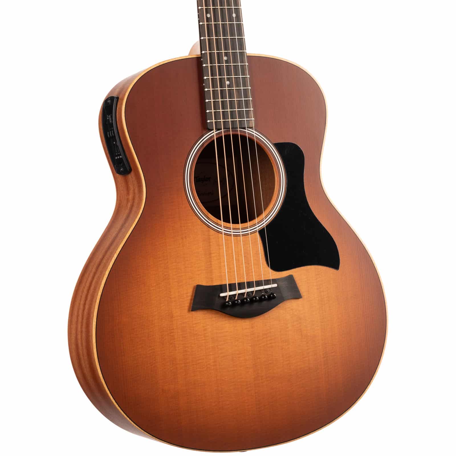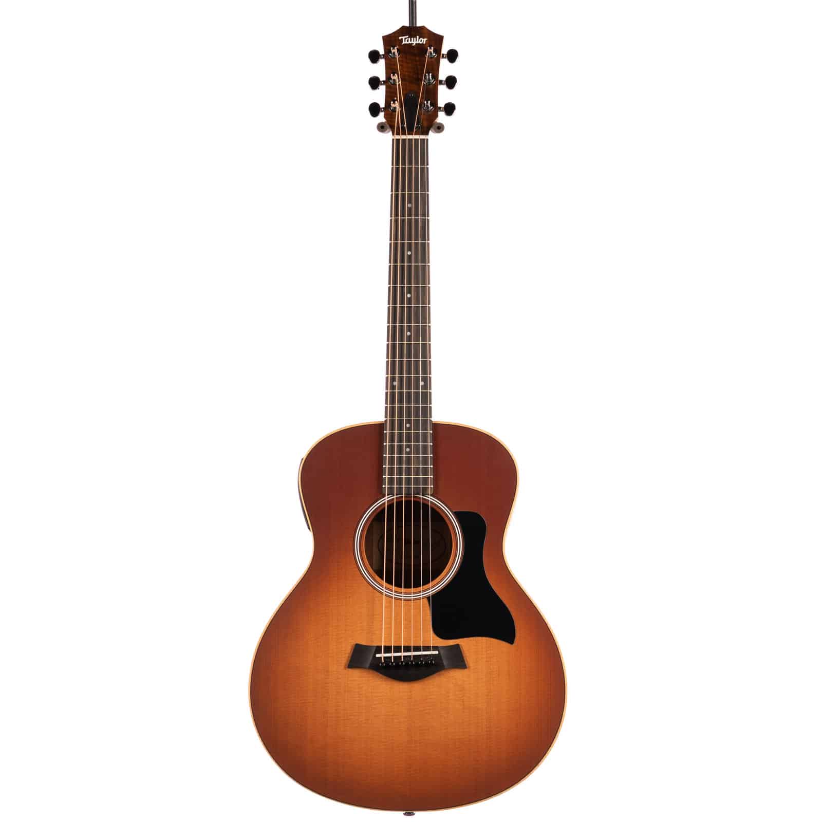 That classic Taylor neck—carved from neo-tropical mahogany—feels instantly familiar and comfortable. With a slightly shorter 23.5″ scale length and a 1-11/16″ nut width, complex chords and buttery-smooth runs feel almost effortless. It’s the kind of guitar you can play for hours without fatigue. And when you’re ready to plug in, the onboard **ES-B electronics** translate its natural acoustic voice with pristine accuracy, and even include a built-in digital tuner for quick adjustments on the fly.