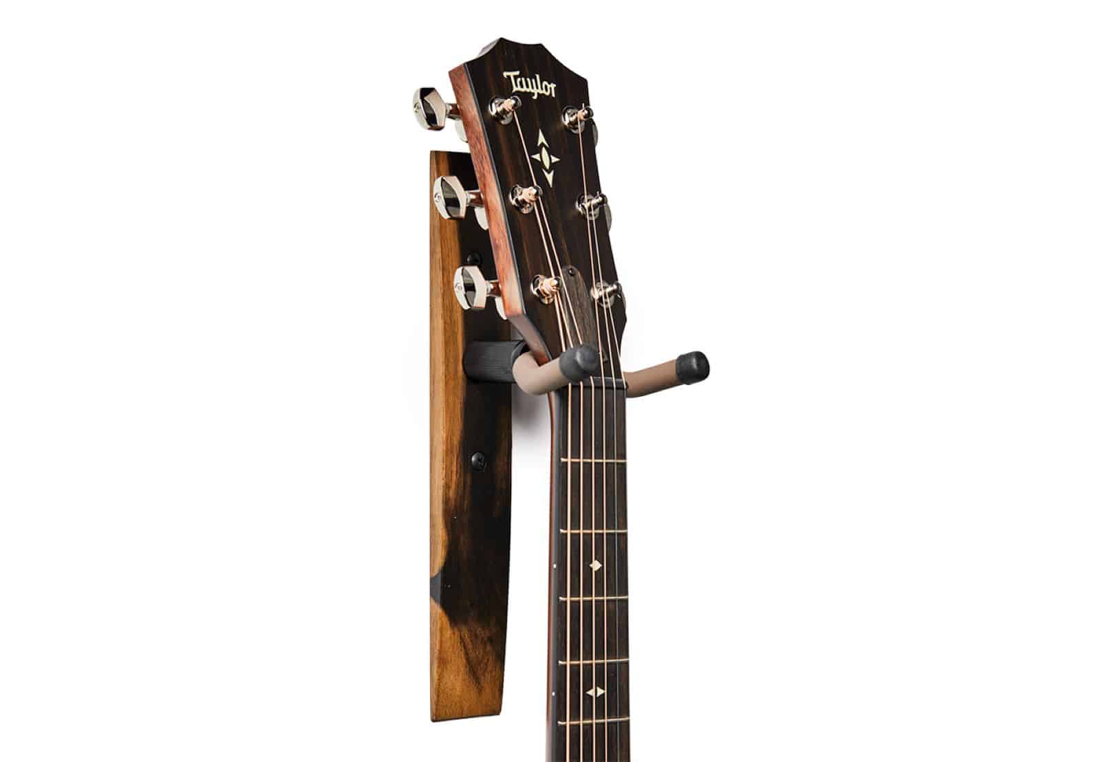 Showoff your favorite Acoustic or Electric guitar in your home or office with this beautiful Crelicam ebony guitar hanger from Taylor Guitars! This clean hanger has no brand or inlay so it can be easily used with any brand of guitar! This finely crafted guitar wall hanger is made from genuine West African Crelicam ebony, the same ebony that Taylor and many other companies use on the fretboards and bridges of many electric and acoustic guitars. A cushioned yoke provides a secure hanging spot for your guitar without damaging the finish or neck, and each wall hanger features a unique organic visual character thanks to ebony’s natural variegation. Purchases support Taylor Guitars tree-planting projects and other environmental initiatives. Each wall hanger features a 1-7/8″ x 11-3/8″ wood mount. Screws included. Model #70206 Photos are stock photos.