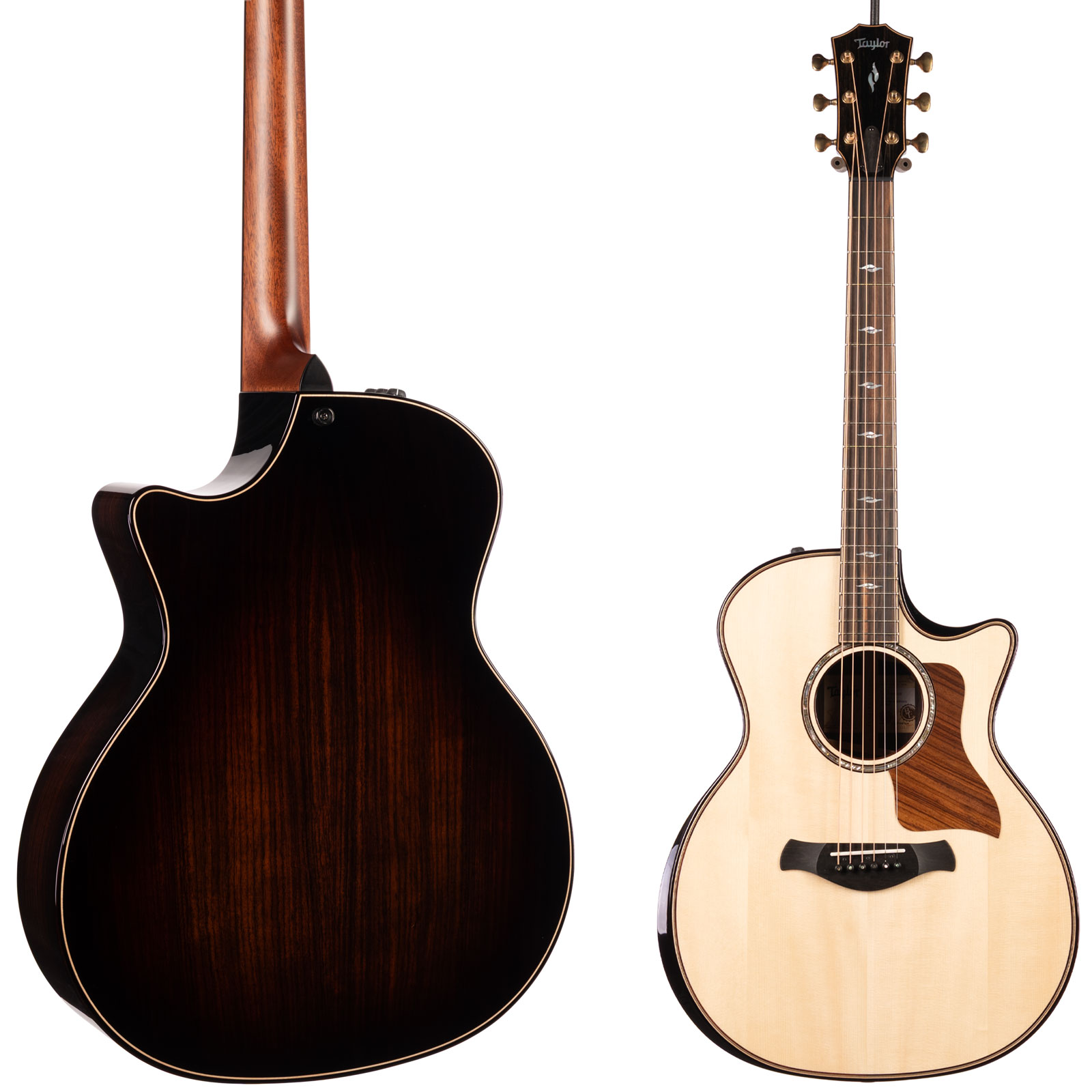 The Venetian cutaway lets your fretting hand glide all the way up the neck when you want to take a solo or add higher chord voicings. Paired with the West African Crelicam ebony fingerboard, the feel is classic Taylor: precise, comfortable, and easy on the hands during long sessions.