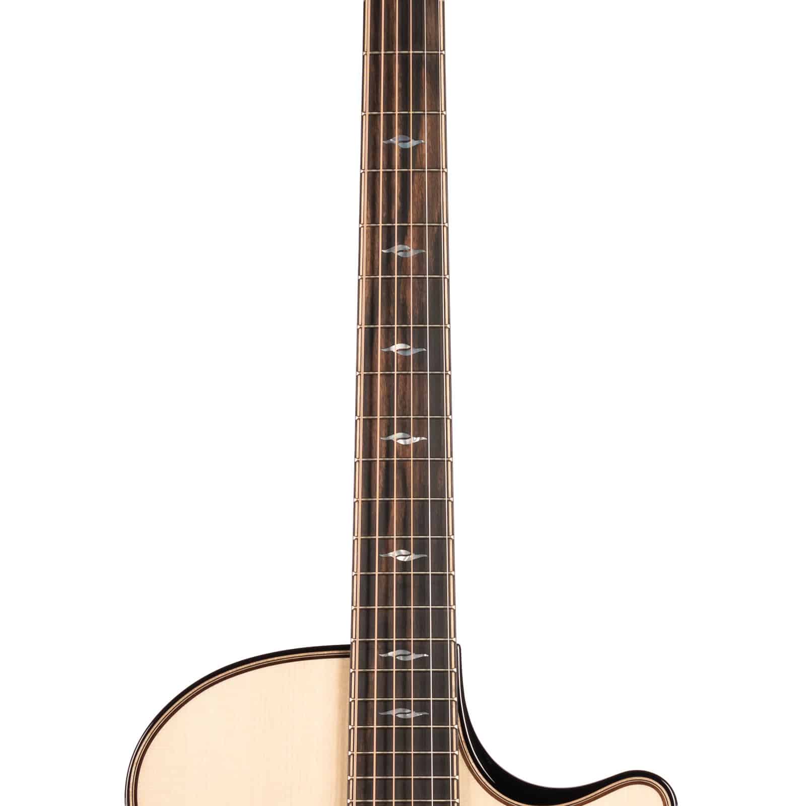 Taylor continues to innovate with the brand-new Action Control Neck, which allows for quick and precise adjustments to the string height, ensuring your setup is always perfectly dialed in. When it’s time to plug in, the new Claria Acoustic Pickup System delivers a transparent and natural amplified tone that captures every detail of the guitar’s acoustic voice. It’s a plug-and-play dream for the stage and a pristine direct signal for the studio.