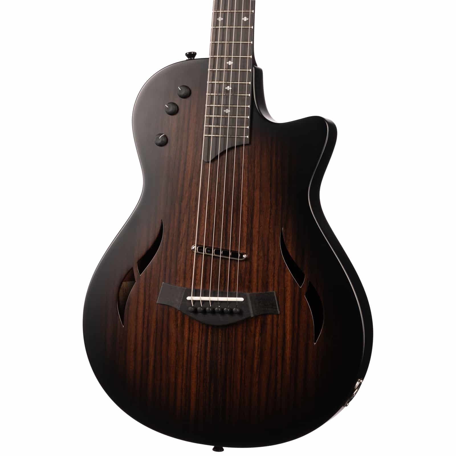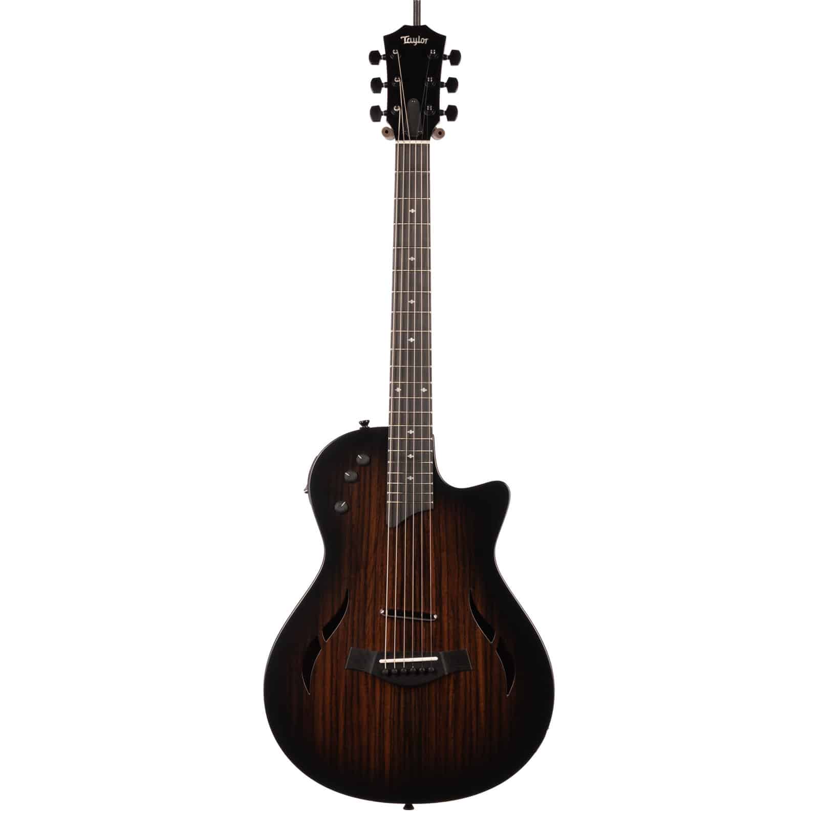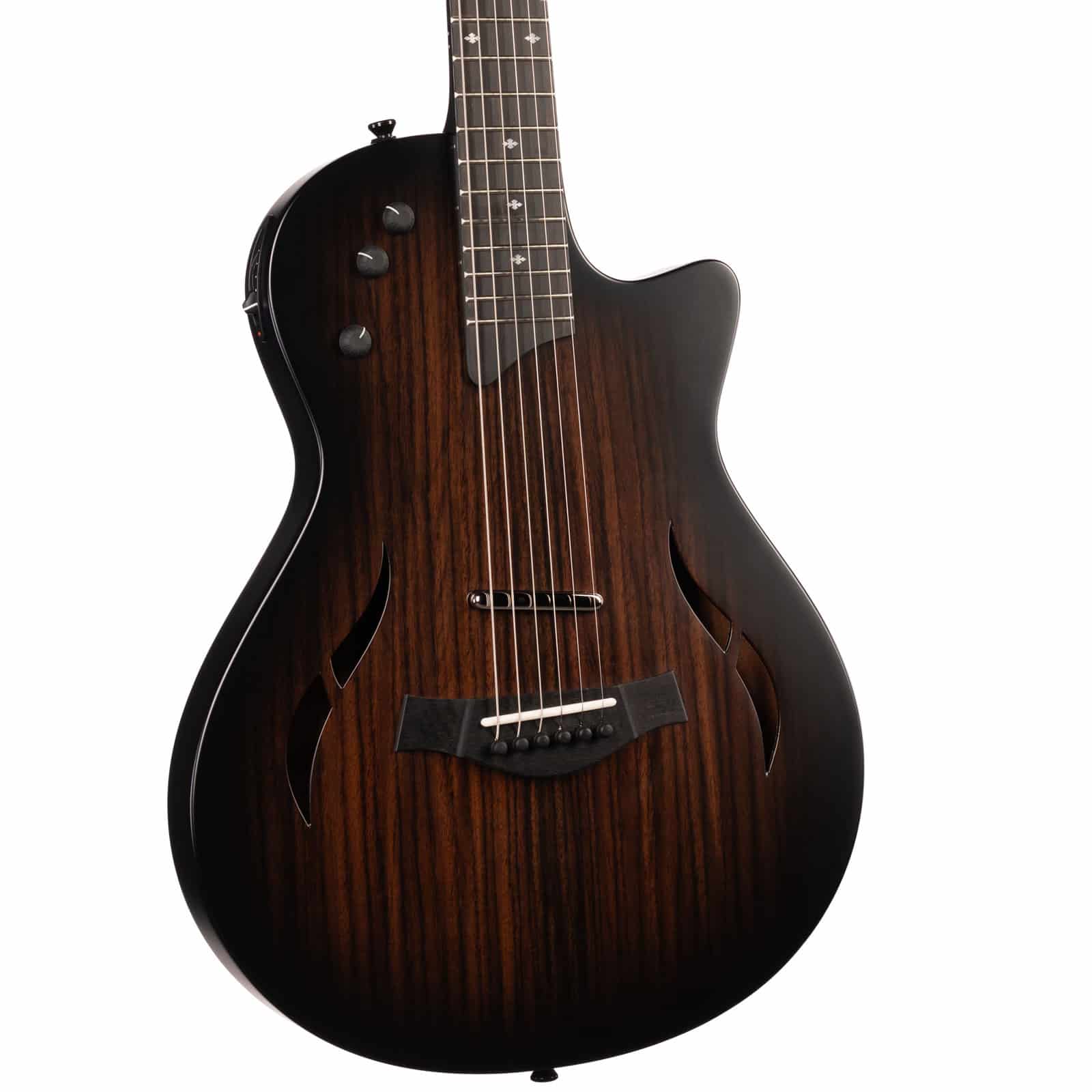 If you’re coming from a solidbody, the T5z will feel like home. Taylor designed it with a comfortable, compact thinline body, a buttery Sapele neck, and a 12″ radius ebony fingerboard that makes big bends and fast runs feel effortless. The jumbo frets and 24.875″ scale length are pure electric, encouraging aggressive playing while maintaining perfect intonation. It’s the perfect crossover instrument—giving you the soul of an acoustic with the speed and comfort of an electric.